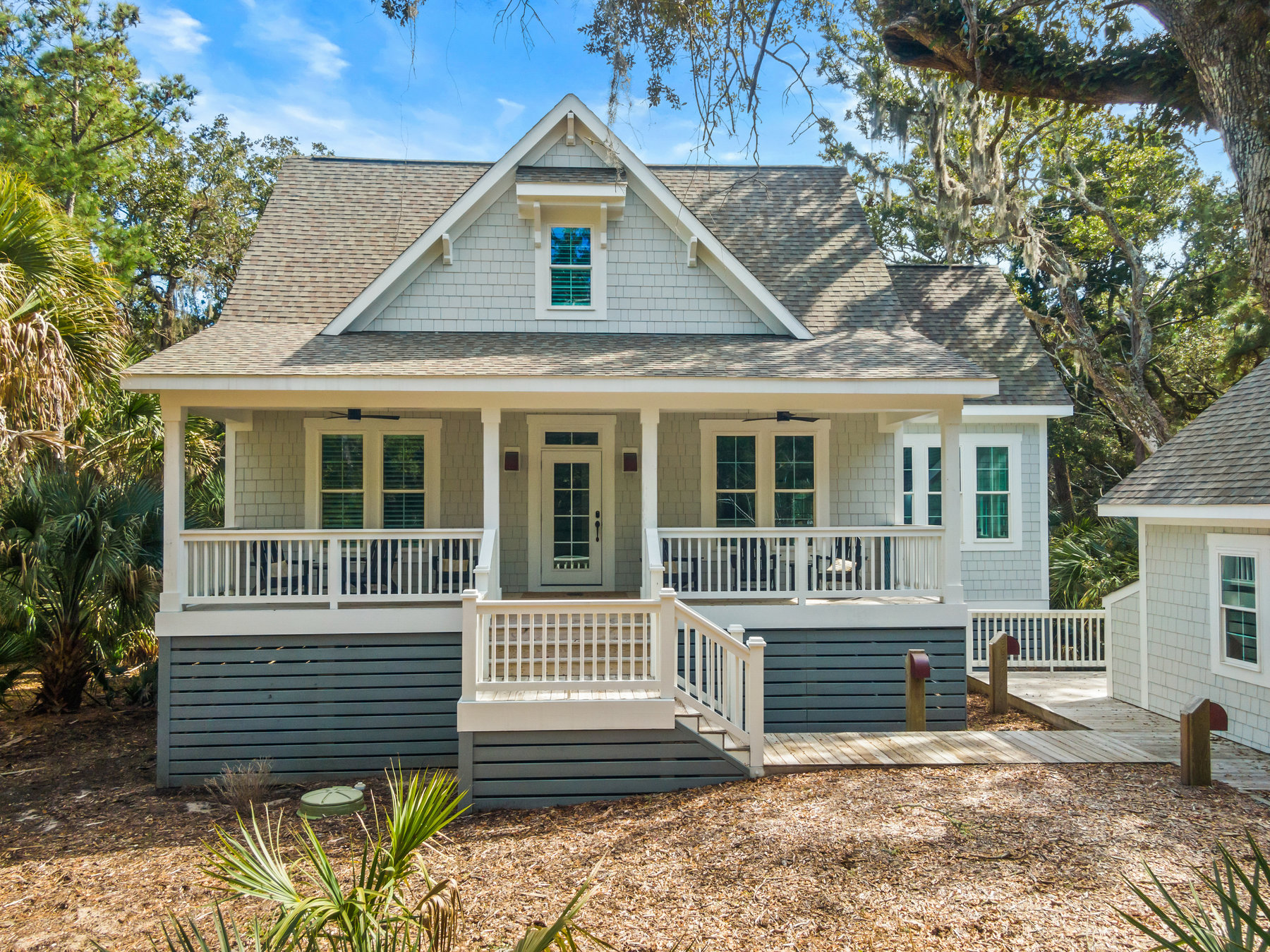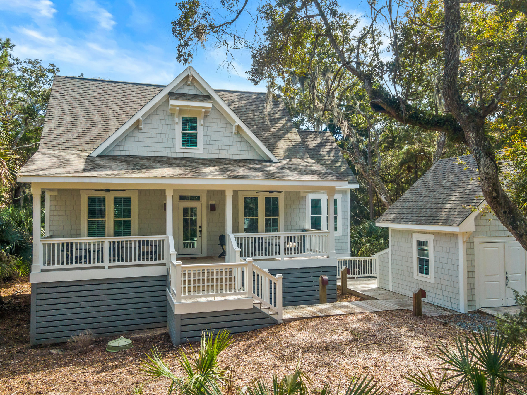 After a day at the beach or pool it is a refreshing treat to wander down the tree lined street and enjoy the peace and serenity of the maritime forest. Continue the refresh experience with an outdoor shower with the live oaks and birdsongs overhead. You will be greeted by the "southern hospitality" front open porch to sit and enjoy morning coffee or afternoon cocktails