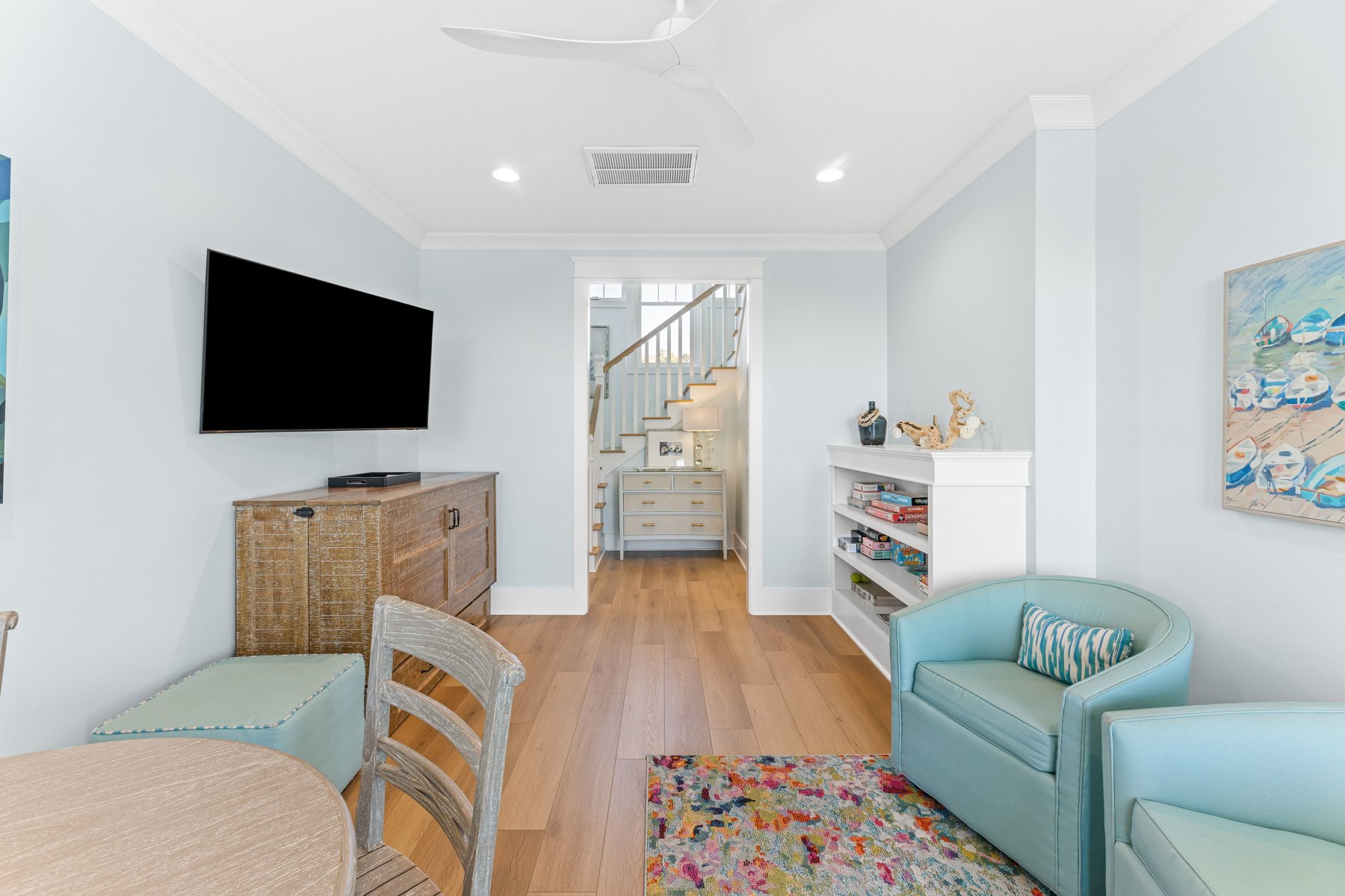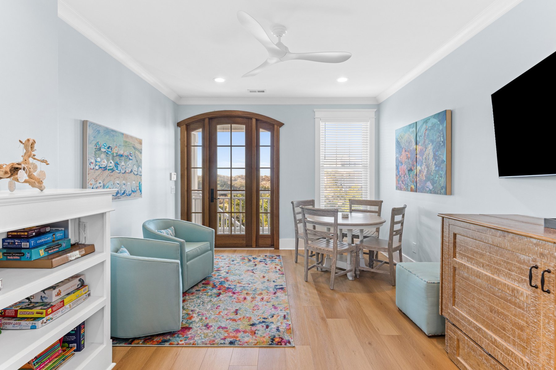 This deluxe home provides guests with three newer golf carts for your use to enjoy the island – 2 four passenger and 1 six passenger all parked in the spacious garage. It also provides the convenience of a highchair, a pack n play, for those with small children. For entertainment, high speed internet is provided. There is a flat screen TV provided in the living room and in each bedroom. Beach chairs, beach umbrellas, and beach towels make your trip to the beach fun and easy.
