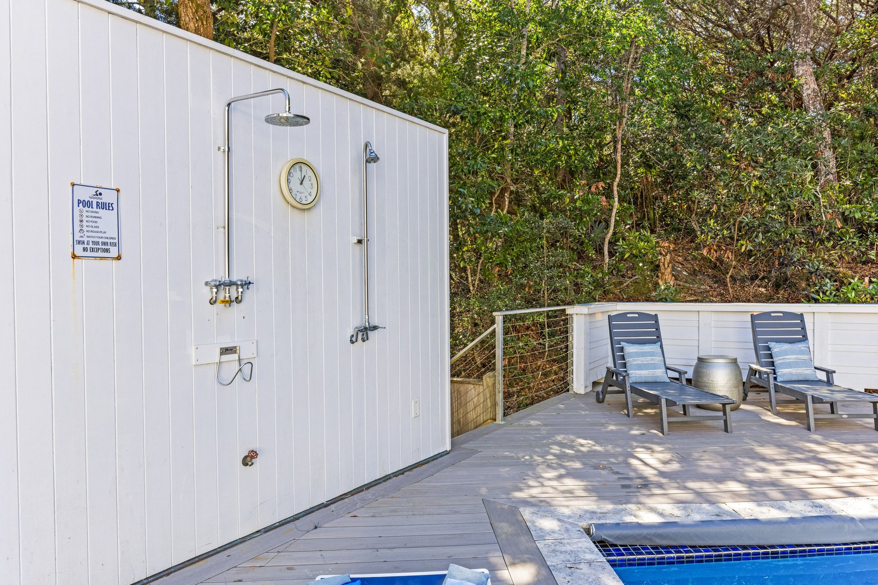 *There are two security cameras located on the exterior of the home that cover the driveway and side entrance. There are also security cameras facing the pool area for insurance purposes and may be turned off at your request during your stay. Use of the pool and swimming is at your own risk.