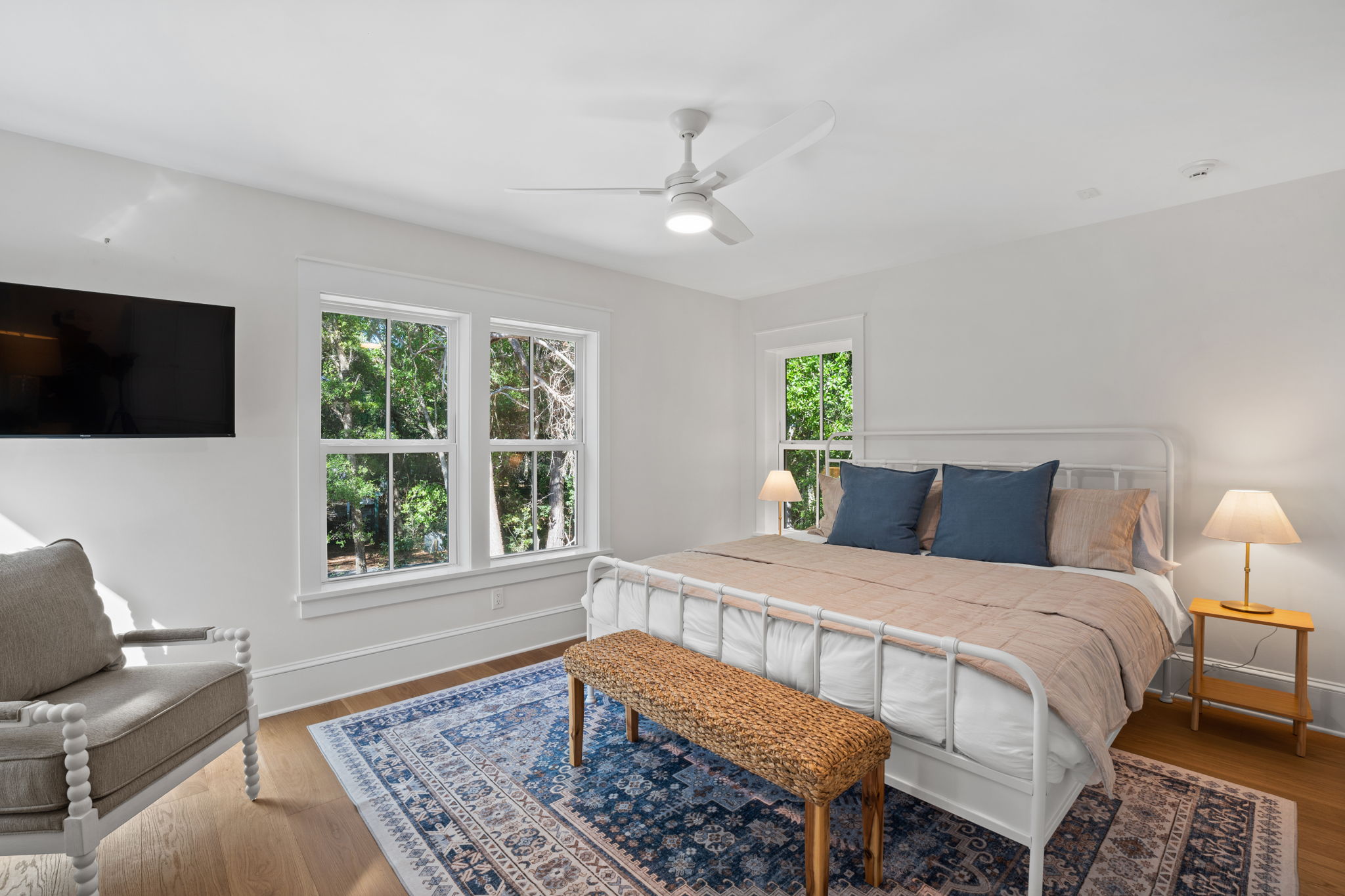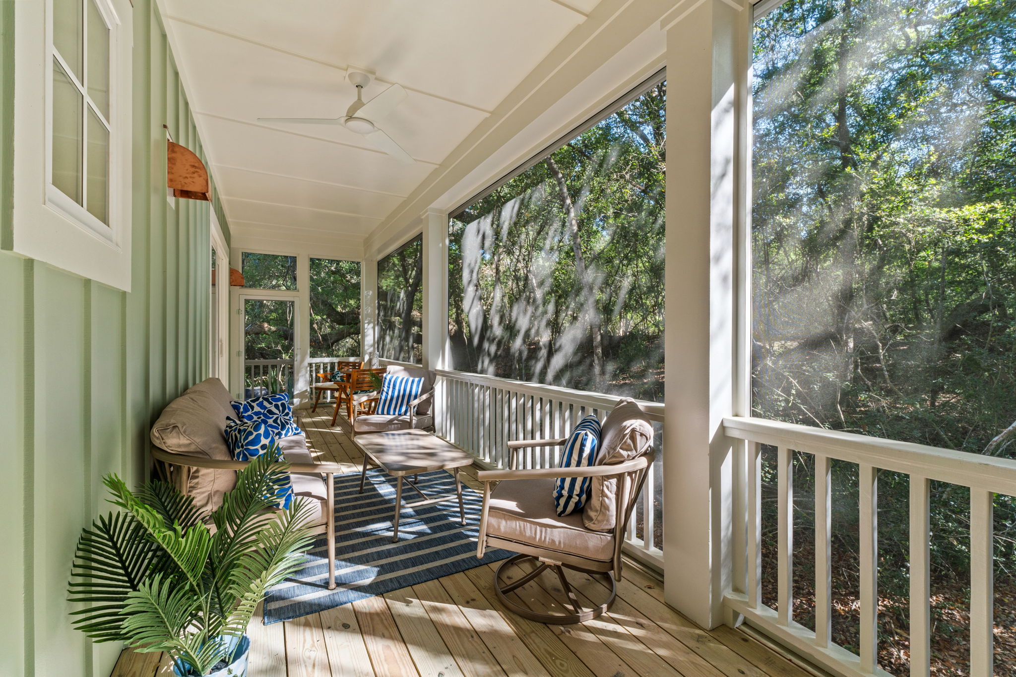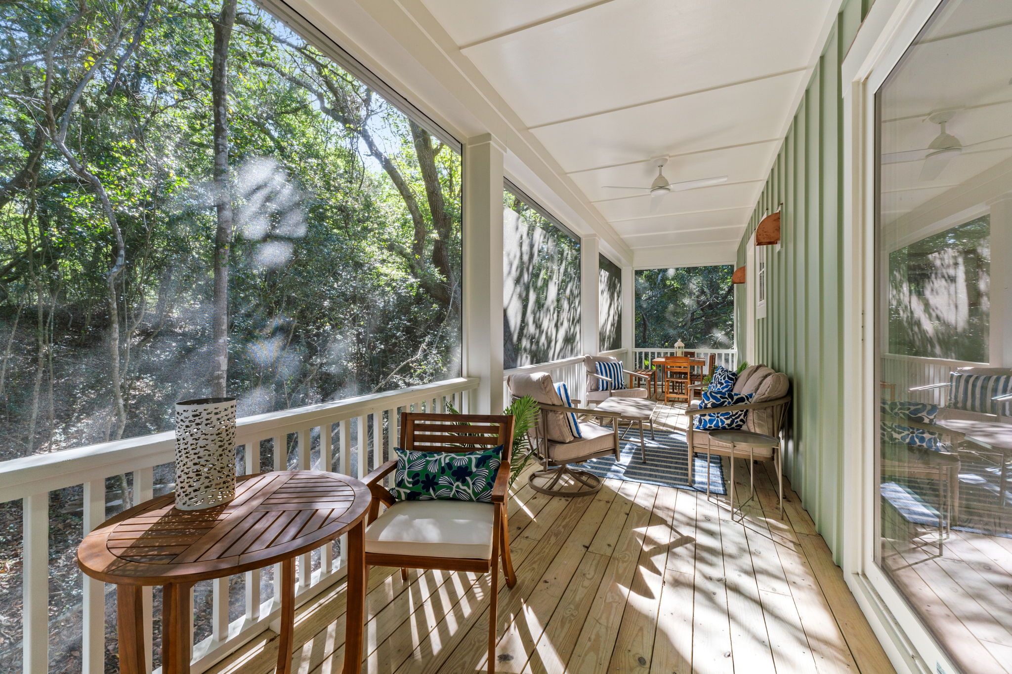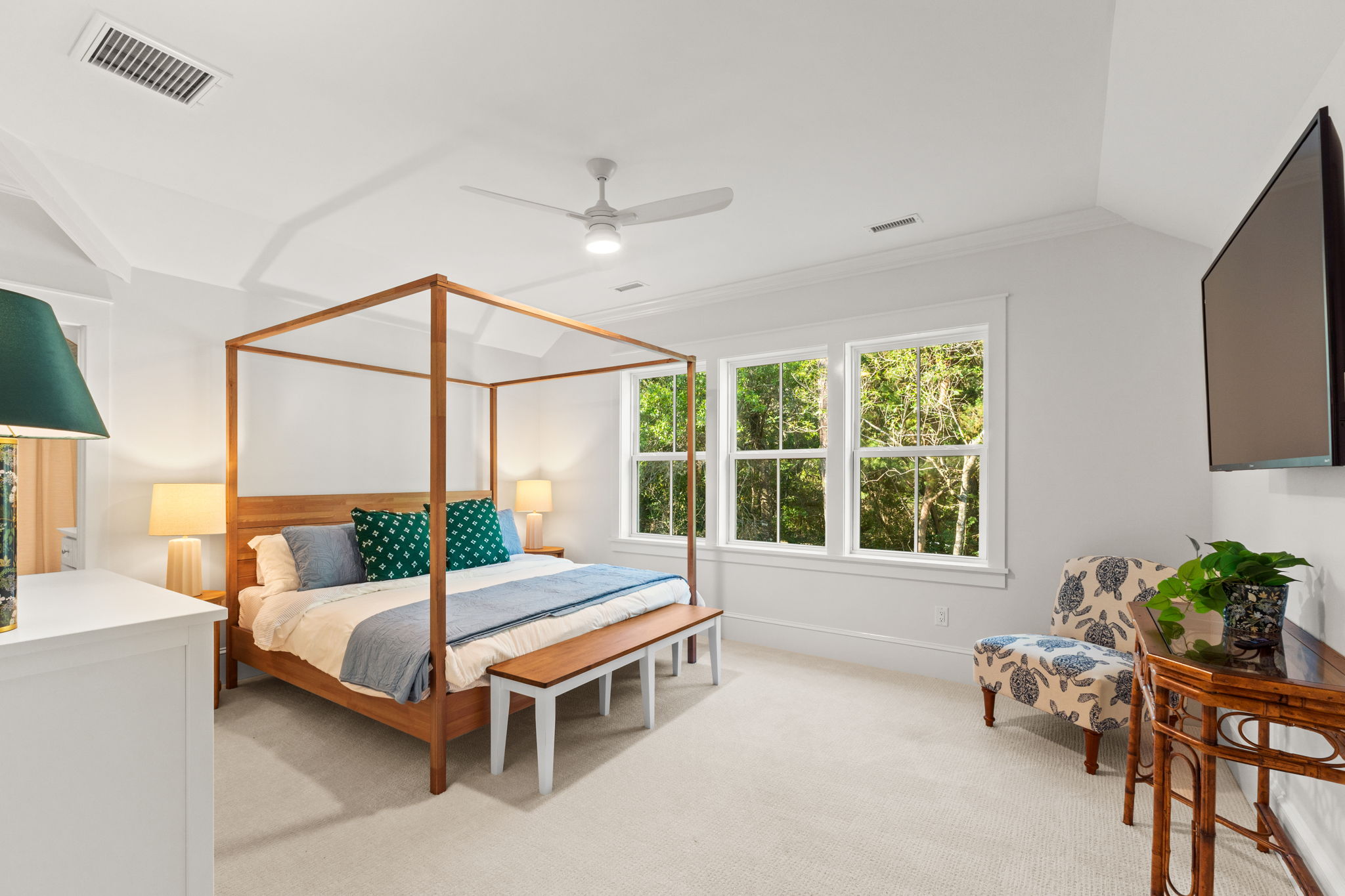 The first floor of this home was designed exactly how Bald Head Islanders want to spend their time when not outside - all together. The XL grand living area has a living room that offers comfortable but elegant furniture for a crowd, a mounted flat screen TV, and a screened-in porch with more living space. The fully equipped gourmet kitchen with plenty of counter space, butler's pantry, new top of line appliances, a fully stocked spice cabinet, multiple coffee makers and designer cookware, will make cooking a breeze. With bar stool seating at the kitchen island, and dining room seating for eight, guests will have plenty of space and everything to create great memories with family and friends while enjoying meals on vacation.