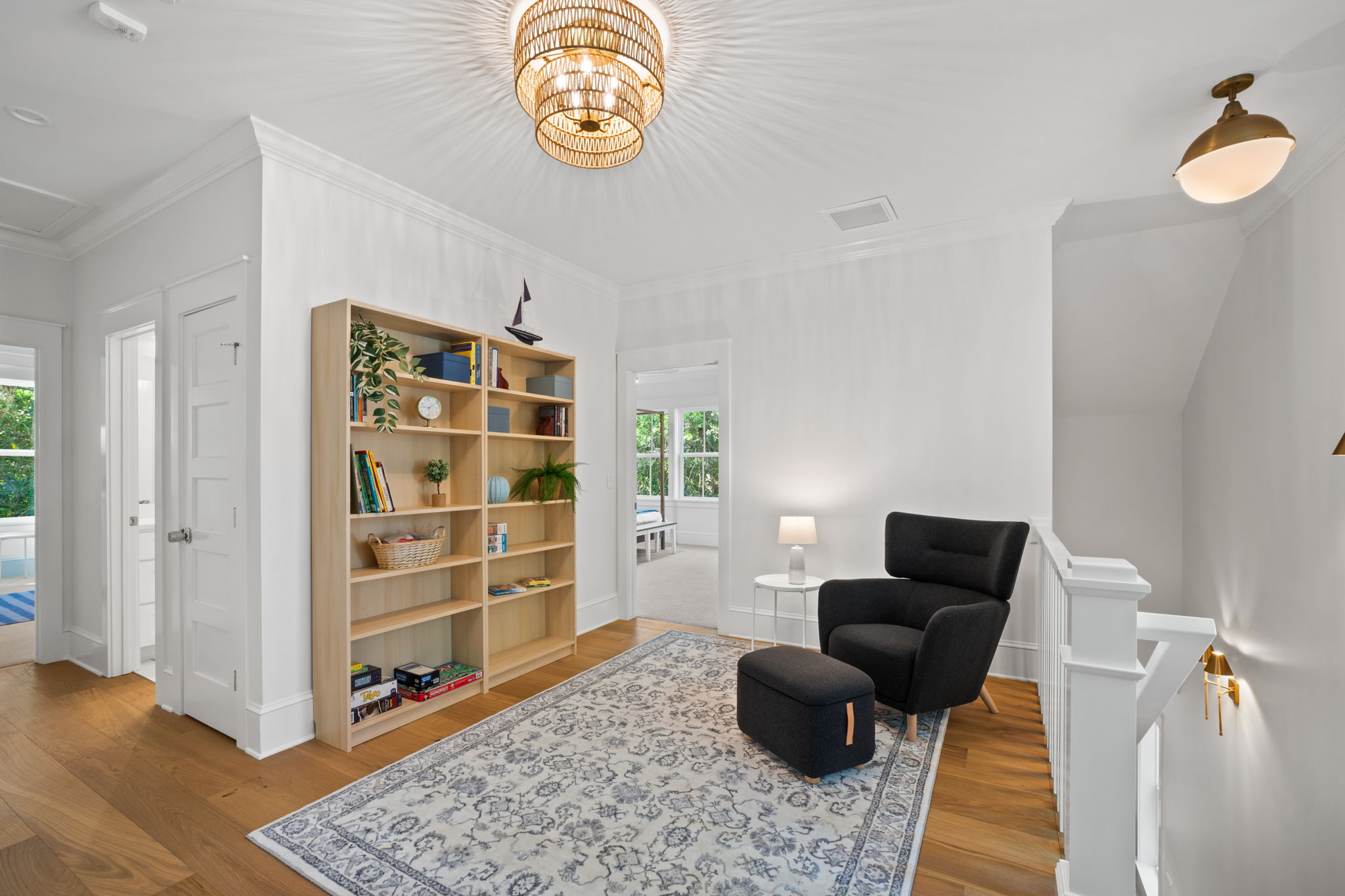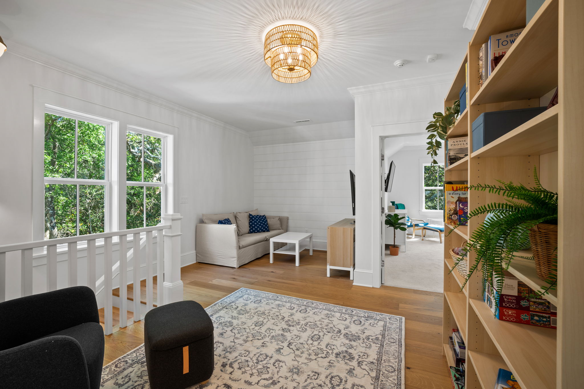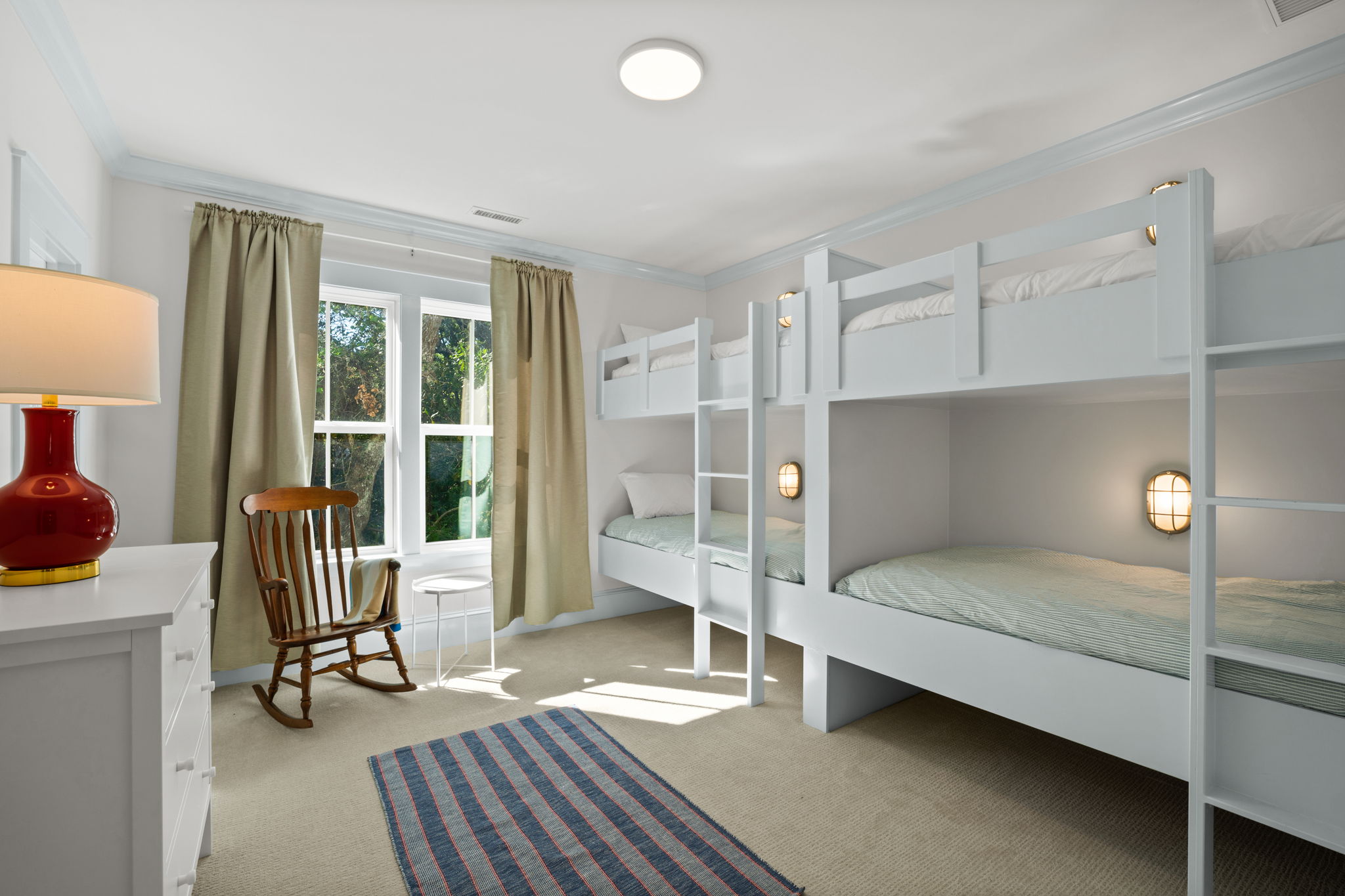 The second floor has a special bonus nook for reading, TV watching or just some quiet time. This floor boasts an additional master bedroom suite with a king-sized bed and private full bath. Also on this floor are two additional bedrooms - one with a king bed and one bunk room with four XL twin beds. These two bedrooms share a delightful coastal full bath with a tub and shower.
